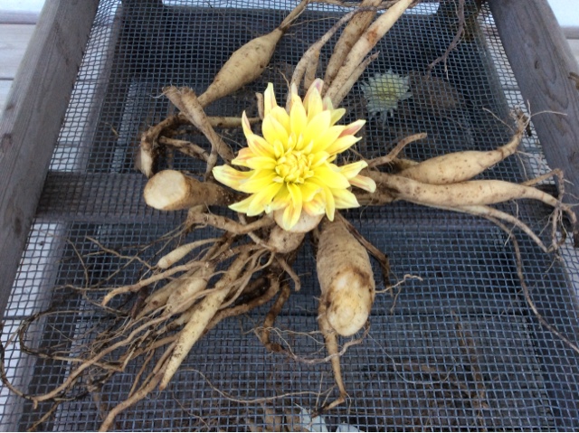 Dahliaerne ligger nu godt og tørt - nu håber jeg bare at de overlever, senere lægger jeg aviser over og